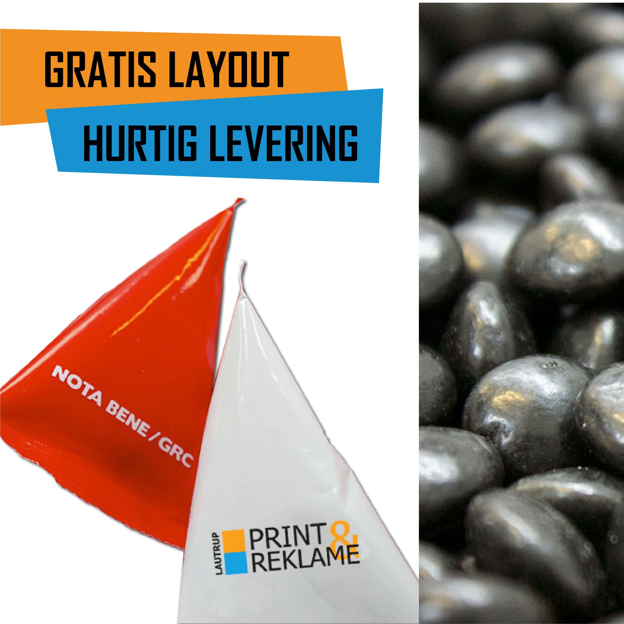 10.000 stk. Trekantet slikpose med eget Logo – Bløde lakridspastiller