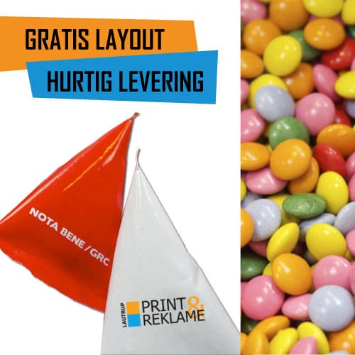 10.000 stk. Trekantet slikpose med eget Logo – Chokoladelinser