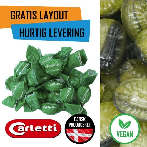 10 kg. Bolsjer med eget Logo – Veganske fersken/lakrids