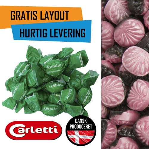 10 kg. Bolsjer med eget Logo – Jordbær/lakrids