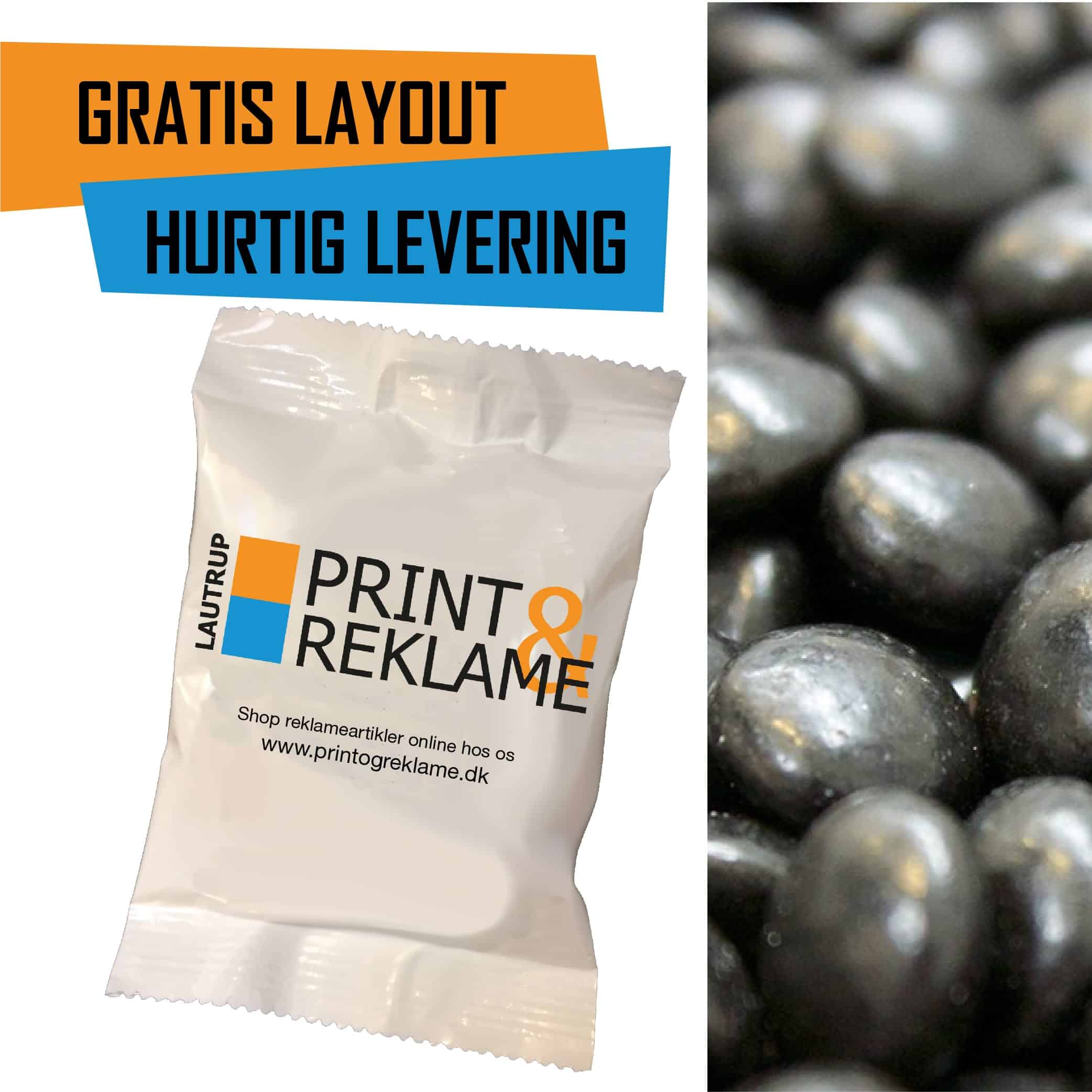 20.000 stk. Slikposer med eget Logo – Bløde lakridspastiller