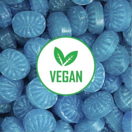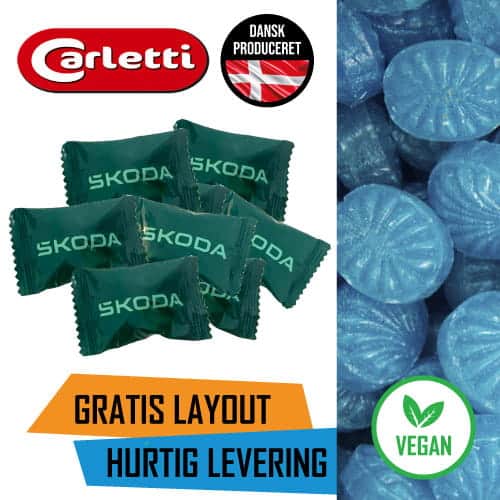 25 kg. Flowpakkede bolsjer med eget Logo – Veganske – Blå ugler