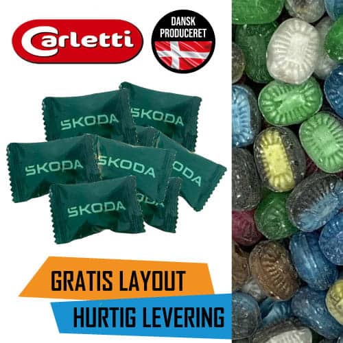 25 kg. Flowpakkede bolsjer med eget Logo – Blandede bolsjer