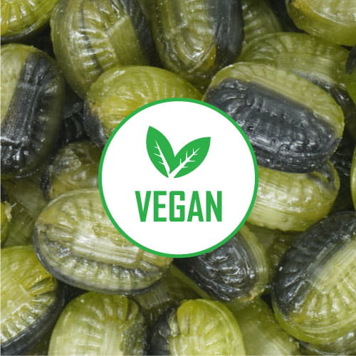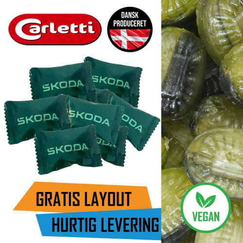 25 kg. Flowpakkede bolsjer med eget Logo – Veganske – Fersken/lakrids