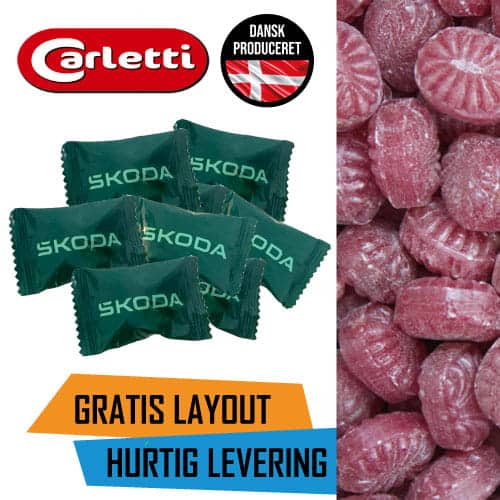 25 kg. Flowpakkede bolsjer med eget Logo – Kongen af Danmark