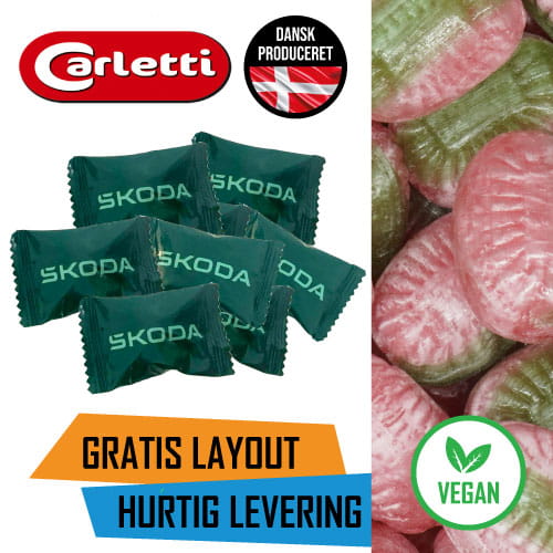 25 kg. Flowpakkede bolsjer med eget Logo – Veganske – Salmiak