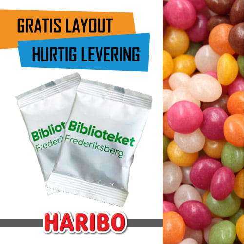 5000 stk. Slikposer med eget Logo – Haribo bløde frugtpastiller