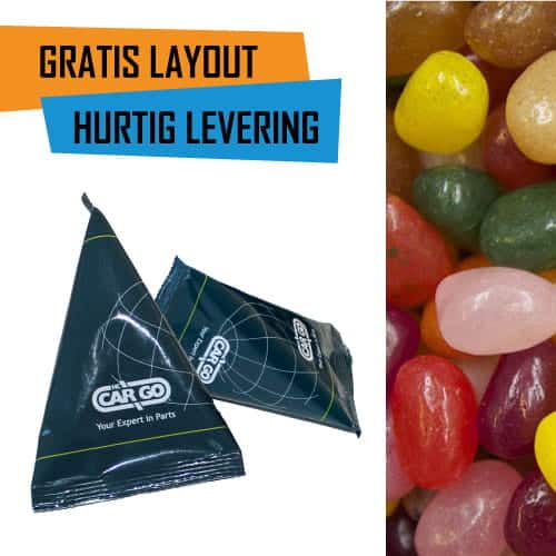 5000 stk. Trekantet slikpose med eget Logo – Jelly Beans