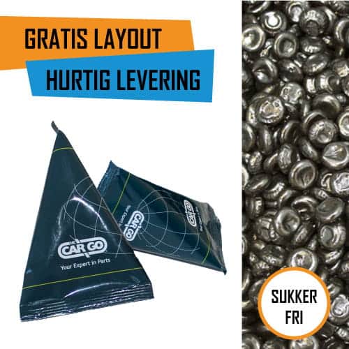 5000 stk. Trekantet slikpose med eget Logo – Sukkerfri C saltlakrids