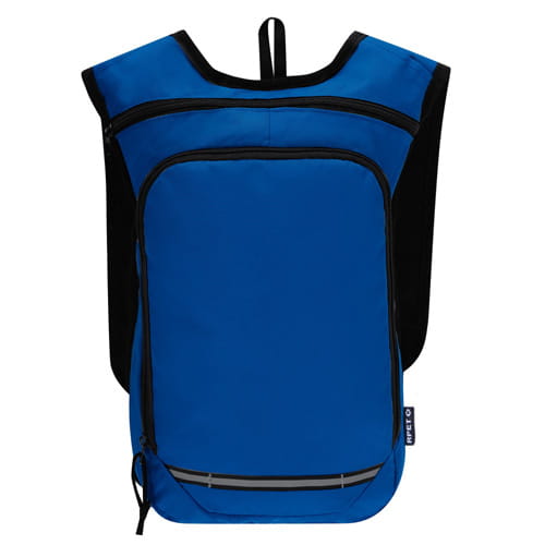 Rygsæk lavet af slidstærkt RPET 600D polyester, designet med reflekterende striber på forsiden for bedre synlighed. Indeholder et rummeligt hovedrum og en praktisk frontlomme, begge med lynlåslukning for nem adgang. Derudover har den polstret og justerbar ryg og stropper. RPET-materialet er lavet af genbrugsplast for at fremme genbrug af plastaffald og bidrage til planetens bæredygtighed.