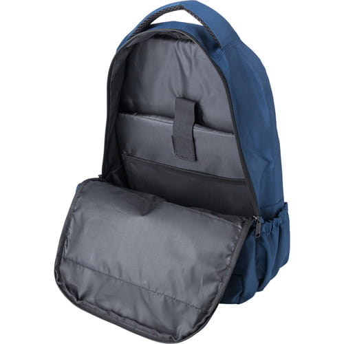 blå Rygsæk, hovedrum med lynlås og forlomme, indvendige lommer, 2 sidelommer, polstrede og justerbare skulderstropper, 45 x 28 x 14 cm