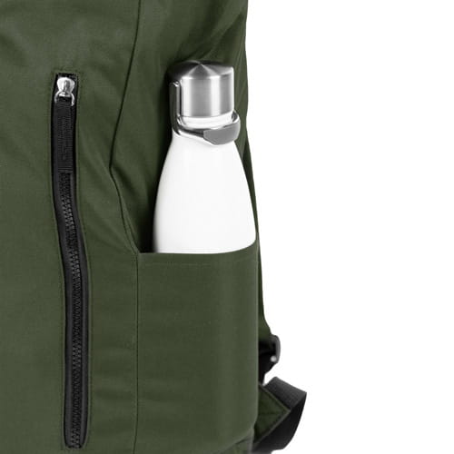 Rygsæk med lynlås hovedrum og frontlomme, lavet af RPET, overholder GRS (Global Recycled Standard) certifikat, 2 sidelommer, udvidelig hovedlomme med spændelukning giver mulighed for at øge kapaciteten og tilbyder mere beskyttelse mod vejret, når den er rullet ned, justerbare skulderstropper