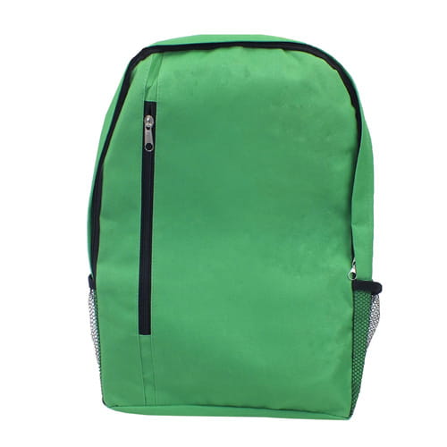 grøn Rygsæk med hovedrum, lynlåslomme foran, 2 sidelommer i net, polstrede skulderstropper, 29 x 14 x 39 cm