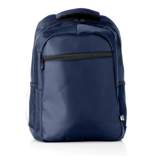 Højkvalitets rygsæk lavet af 420D RNYLON. Hovedrum med matchende lynlåslukning og dobbelt lynlås. Inklusive udvendig lynlåslomme og 2 sidelommer i net. Polstret håndtag, ryg- og skulderstropper, sidstnævnte justerbar. Indvendigt med polstret laptoprum til bærbare computere op til 15 tommer og fastgørelse på bagsiden til trolleyplads. Fås i en bred vifte af farver med det karakteristiske genbrugsmærke på den ydre etiket. RNYLON-materialet er lavet af genbrugsplast for at fremme genbrug af plastaffald og bidrage til planetens bæredygtighed.