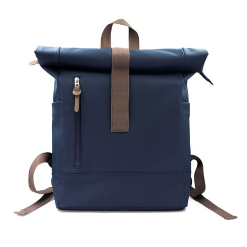 marineblå Laptop-rygsæk med rulletag 15,6″ B’RIGHT, vandafvisende, 28L kapacitet, hovedrum med lynlås, laptoprum, udvendig lomme med vandafvisende lynlås, 2 sidelommer, 38 x 49 x 11 cm