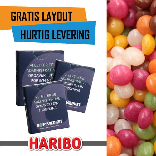 Vi tilbyder også små slikposer, trekantsposer, bolsjer med logo og tyggegummipakker med logo. Mulighed for 500 – 2500 – 5000 – 10.000 eller 20.000 stk. alt efter hvilken indpakning der ønskes. Slikket med logotryk er en af de mest brugte produkter med meget stor reklameværdi. Er du på udkig efter andet reklameslik, så finder du hele vores udvalg af logoslik lige her