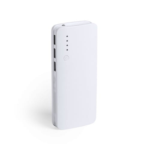 Eksternt hjælpebatteri med høj opladningskapacitet -10.000 mAh-. Med tredobbelt USB-udgang til opladning af op til 3 enheder samtidigt, inklusive LED-indikatorer for opladningsstatus. Buet design med hvidt hus og sider i klare farver med et stort brandingsområde. Præsenteres i en attraktiv designæske. De viste kapaciteter i alle vores eksterne hjælpebatterier er reelle, da de alle indeholder ikke-genbrugsbatterier i klasse A med en levetid på mindst 500 opladningscyklusser og overholder CE-reglerne. Derudover er de fremstillet i henhold til RoHS-standarder og i overensstemmelse med følgende sikkerhedskrav: Overopladningsbeskyttelsessystem til powerbank. Komplet afladningsbeskyttelsessystem, der øger powerbankens holdbarhed. Blokeringssystem for at forhindre kortslutninger. Konstant opladningssystem i overensstemmelse med målenhedens kapacitet.