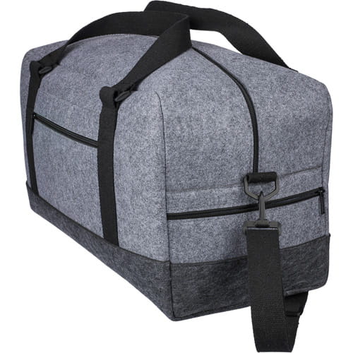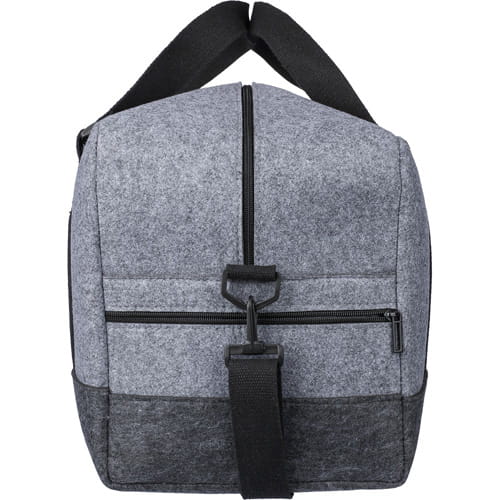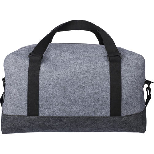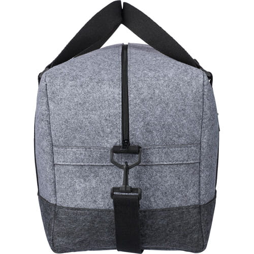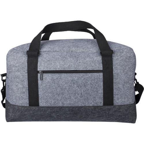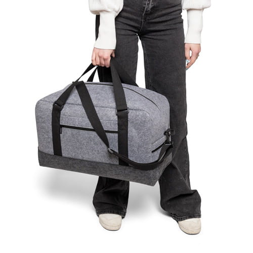 RPET sportsrejsetaske med bærehåndtag i lærred, justerbar skulderrem, stort lynlåsrum, lille lynlåsrum på forsiden, RPET-ikon på mærke, kapacitet: 30 l, bæreevne: 10 kg, produkt lavet af RPET-filt