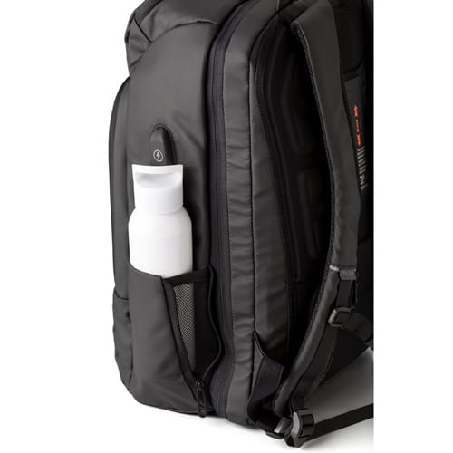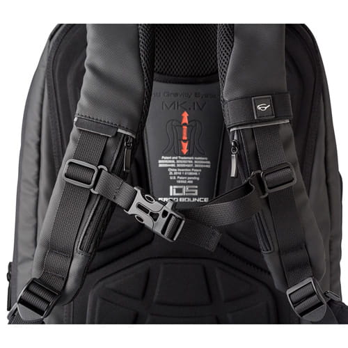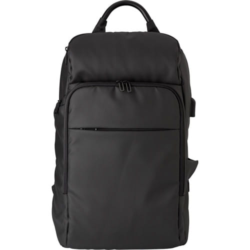 Laptoprygsæk 15″, vægtreduktionssystem, hovedrum med lynlås og forlommer, indvendige lommer, 2 sidelommer isoleret med aluminium, USB-tilslutning (powerbank medfølger ikke), polstret laptoprum, polstret ryg- og skulderstropper