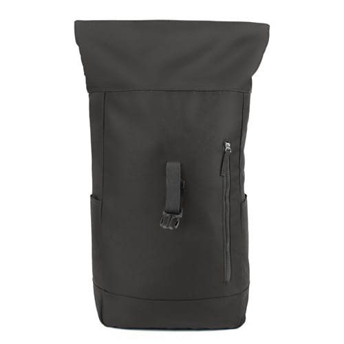 sort Rygsæk med lynlås hovedrum og frontlomme, lavet af RPET, overholder GRS (Global Recycled Standard) certifikat, 2 sidelommer, udvidelig hovedlomme med spændelukning giver mulighed for at øge kapaciteten og tilbyder mere beskyttelse mod vejret, når den er rullet ned, justerbare skulderstropper, 60 x 27 x 14 cm