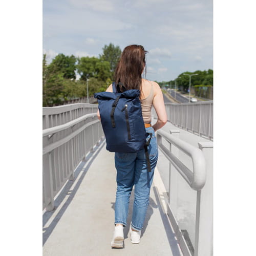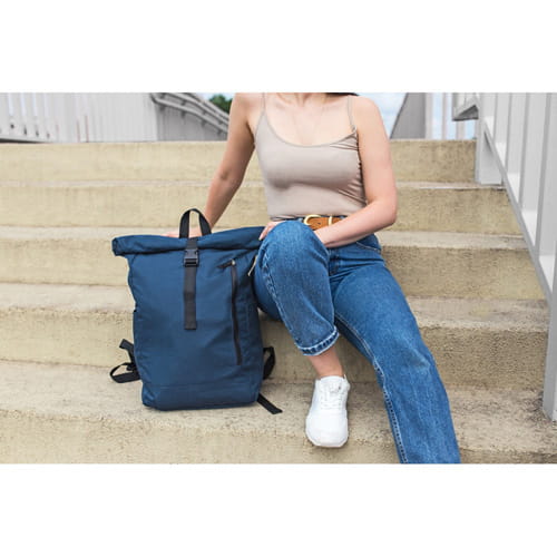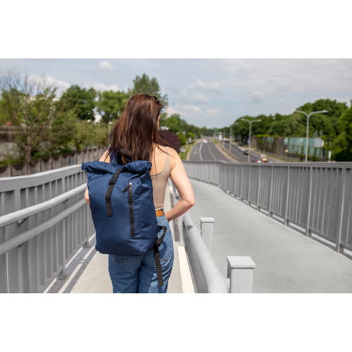 Rygsæk med lynlås hovedrum og frontlomme, lavet af RPET, overholder GRS (Global Recycled Standard) certifikat, 2 sidelommer, udvidelig hovedlomme med spændelukning giver mulighed for at øge kapaciteten og tilbyder mere beskyttelse mod vejret, når den er rullet ned, justerbare skulderstropper