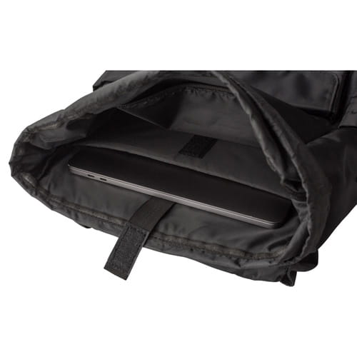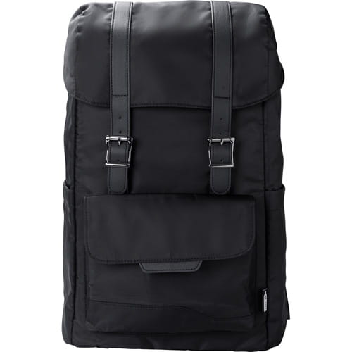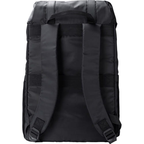 sort Rygsæk med klap af RPET, to sidelommer, forlomme lukket med magnet, inderlomme lukket med snor, lomme til en 15″ bærbar computer, vandtæt belægning på tasken., 30 x 16 x 42 cm