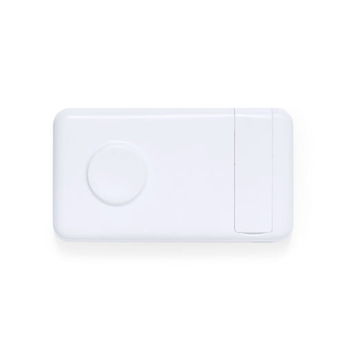 Eksternt hjælpebatteri med 5.000 mAh opladningskapacitet. Med integreret 15W trådløs oplader til tilslutning af din smartphone eller smartwatch, inklusive Type C input/output-stik + USB-udgang. Med praktisk smartphone-holderfane. Præsenteres i en individuel øko-designet æske i kraftpap. Type C input/output: 5-12V DC 3-1.5A, 18W USB-udgang: 5-12V DC 3-1.5A, 18W Kapaciteterne vist i alle vores eksterne hjælpebatterier er reelle, da de alle indeholder ikke-genbrugsbatterier af klasse A med en levetid på mindst 500 opladningscyklusser og overholder CE-reglerne. Derudover er de fremstillet i henhold til RoHS-standarder og i overensstemmelse med følgende sikkerhedskrav: Powerbank overopladningsbeskyttelsessystem. Komplet afladningsbeskyttelsessystem, der øger powerbankens holdbarhed. Blokeringssystem for at forhindre kortslutninger. Konstant opladningsoverførselssystem i overensstemmelse med målenhedens kapacitet.