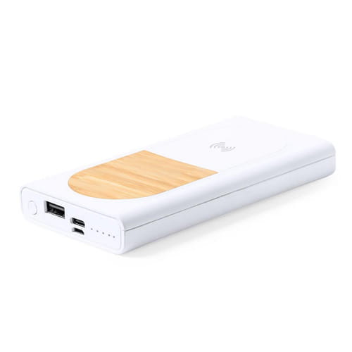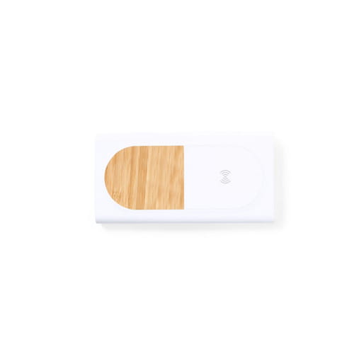 Nature line, eksternt hjælpebatteri med integreret trådløs oplader og 15W hurtigopladningsfunktion. Kabinet i en kombination af bambus og PLA – Poly Lactic Acid -, som er udvundet af 100% naturlige ressourcer såsom majsstivelse, yucca eller sukkerrør, og som kan blive 100% komposterbart ved slutningen af sin levetid. 8.000 mAh kapacitet med opladningsstatusindikator. Dobbelt Type C input/output-stik, micro USB-indgang og 1 USB-udgang. Micro USB-opladerkabel medfølger og er kompatibel med enheder udstyret med trådløs opladningsteknologi. Stor brandingoverflade og præsenteret i en attraktiv øko-designæske. Med PLA-emblem på varen. Kapaciteten vist i alle vores eksterne hjælpebatterier er reel, da de alle indeholder ikke-genbrugsbatterier af klasse A med en levetid på mindst 500 opladningscyklusser og overholder CE-reglerne. Derudover er de fremstillet i henhold til RoHS-standarder og i overensstemmelse med følgende sikkerhedskrav: Powerbank overopladningsbeskyttelsessystem. Komplet afladningsbeskyttelsessystem, der øger powerbankens holdbarhed. Blokeringssystem for at forhindre kortslutninger. Konstant opladningsoverførselssystem, i overensstemmelse med målenhedens kapacitet.