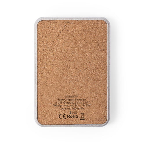 Eksternt Nature Line-hjælpebatteri med integreret 5W trådløs oplader. Hus i kombination af naturkork og hvedestråmaterialer. 5.000 mAh kapacitet og opladningsstatusindikator. Dobbelt USB-udgang og Type C-indgang. Med stor printflade og præsenteret i en attraktiv øko-designæske. De viste kapaciteter i alle vores eksterne hjælpebatterier er reelle, da de alle indeholder ikke-genbrugsbatterier af klasse A med en levetid på mindst 500 opladningscyklusser og overholder CE-reglerne. Derudover er de fremstillet i henhold til RoHS-standarder og i overensstemmelse med følgende sikkerhedskrav: Powerbank-overopladningsbeskyttelsessystem. Komplet afladningsbeskyttelsessystem, der øger powerbankens holdbarhed. Blokeringssystem for at forhindre kortslutninger. Konstant opladningssystem, der overfører enhedens kapacitet.